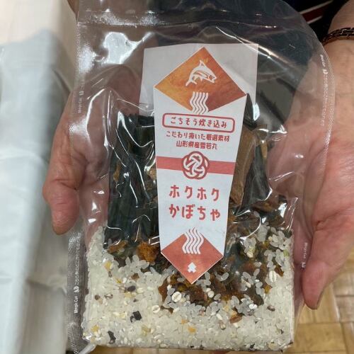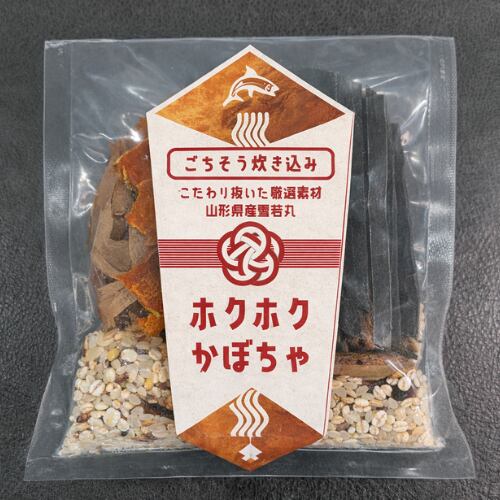 白米、雑穀米、北海道産日高昆布、鹿児島産鰹節、かぼちゃを一袋にまとめた、やさしい甘みと旨みを楽しめる炊き込みご飯の素です。